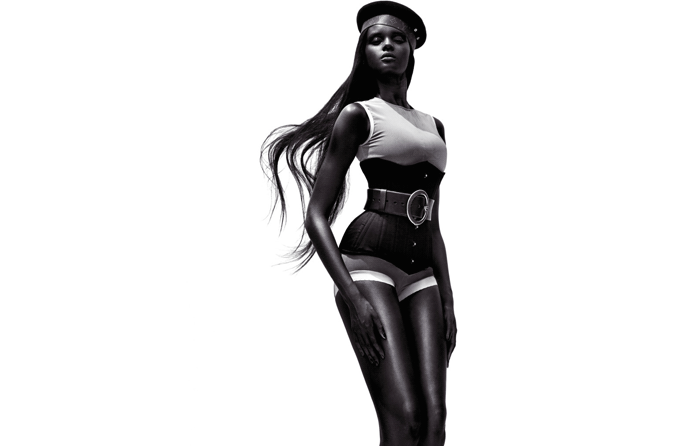 Then again, Duckie's skin color is a large part of the reason her name has slowly (but, no doubt, surely) become a mainstay for the fashion set. It's a warm, mocha chocolate that's impossibly smooth and even-toned, and its dark hue is striking in a way that has made her simultaneously adored by casting agents looking for something radically different to the white industry norm and uplifted by the onlooking people of color observing -- and celebrating -- her increasingly rapid success. This latter community has even anointed her with the title of "Black Barbie."